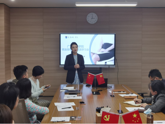 在会议交流环节,赵霖主任对推进就业指导“金课”课程建设进行了简要阐述。她提出以下观点,第一,就业指导课程要不断改革,课程内容要及时更新。一是将课程思政融入课程全过程,以树立正确职业观就业观为出发点,包括弘扬大国工匠精神、正能量榜样、家国情怀等;二是根据国家需要和市场需要进行就业指导,将大湾区的人才需求及产业发展等内容嵌入就业指导课程中。第二,就业指导“金课”课程应具备三个基本特征,分别是以“培养学生的创新意识、创业能力和创造精神”为核心目标、采用线上线下混合式教学模式及情境教学模拟实操,课赛结合,体现“内容上创新性,方法上高级性,成果上挑战度”等“金课”基因。第三,就业指导课程要做到能够激发学生的思考,触动学生的灵魂,而不是一味地灌输。